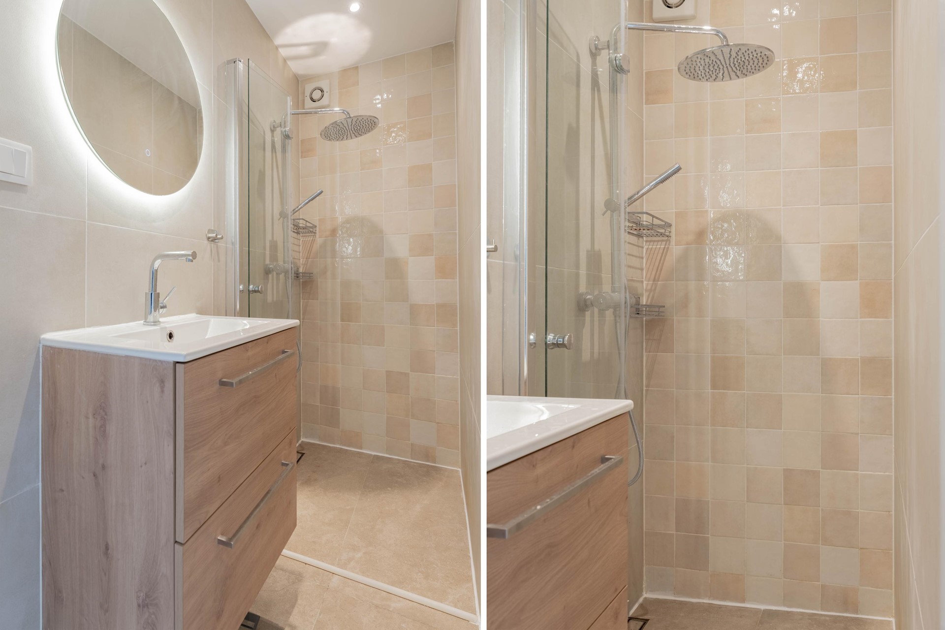 De badkamer, centraal in de woning, is recent gerenoveerd en uitgerust met modern sanitair. Daarnaast vind je in de hal een separate toiletruimte.