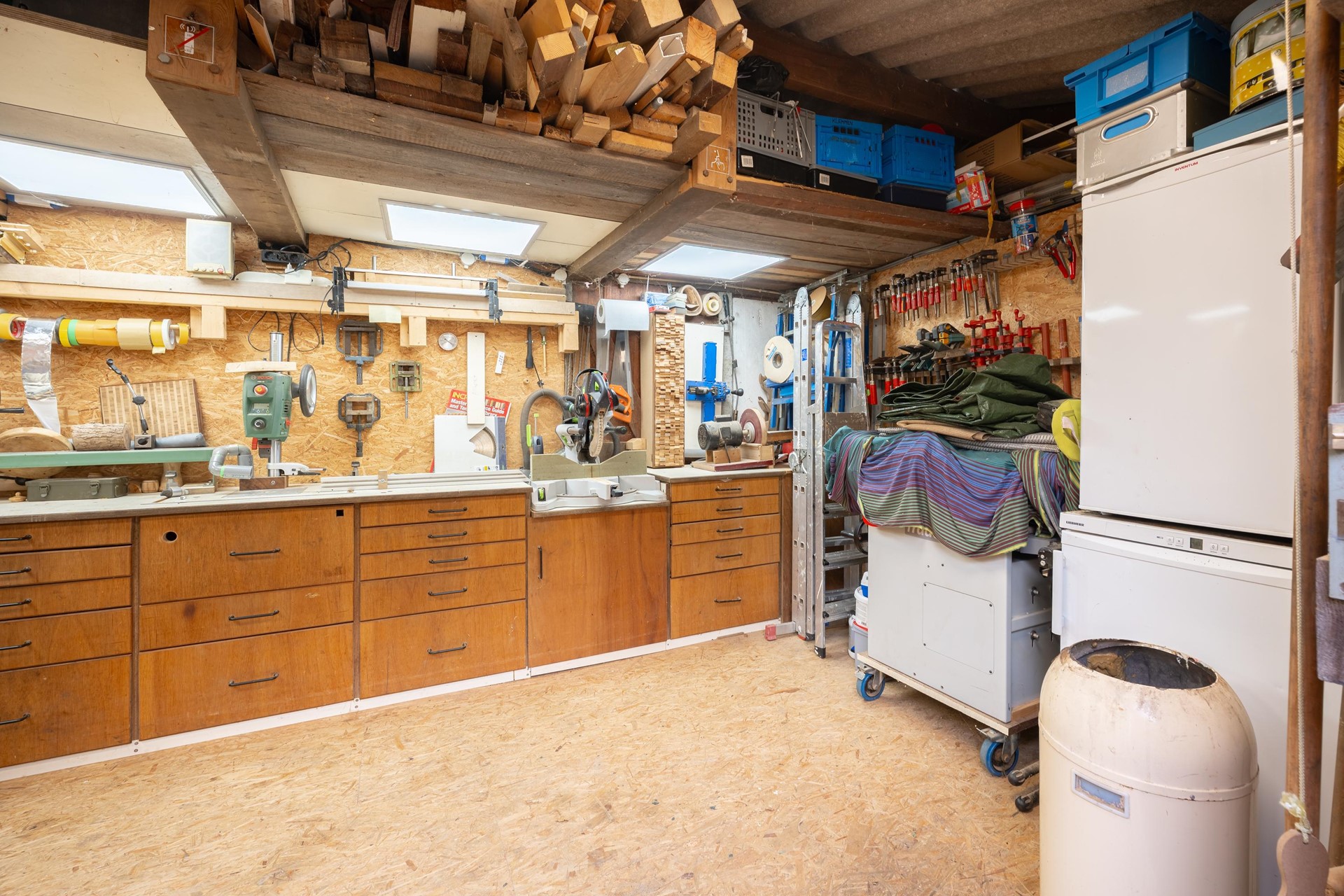 Parterre: Voortuin, entree, hal, trapkast, toilet, ruime woonkamer met erker, openslaande deuren naar de achtertuin, open keuken met veel werkblad. Serre met veel daklicht. In de tuin bevindt zich een ruime (werk)schuur.