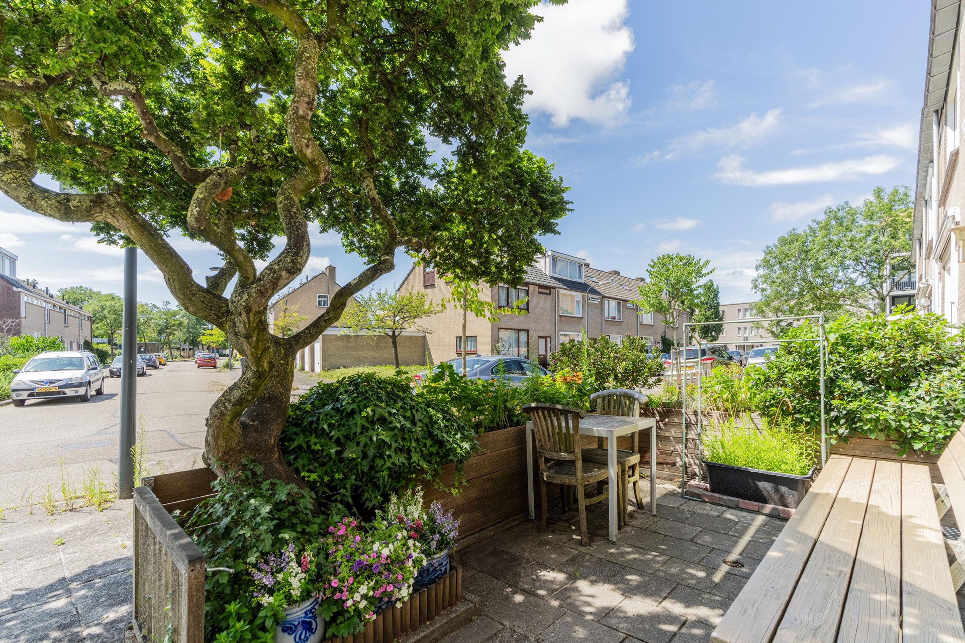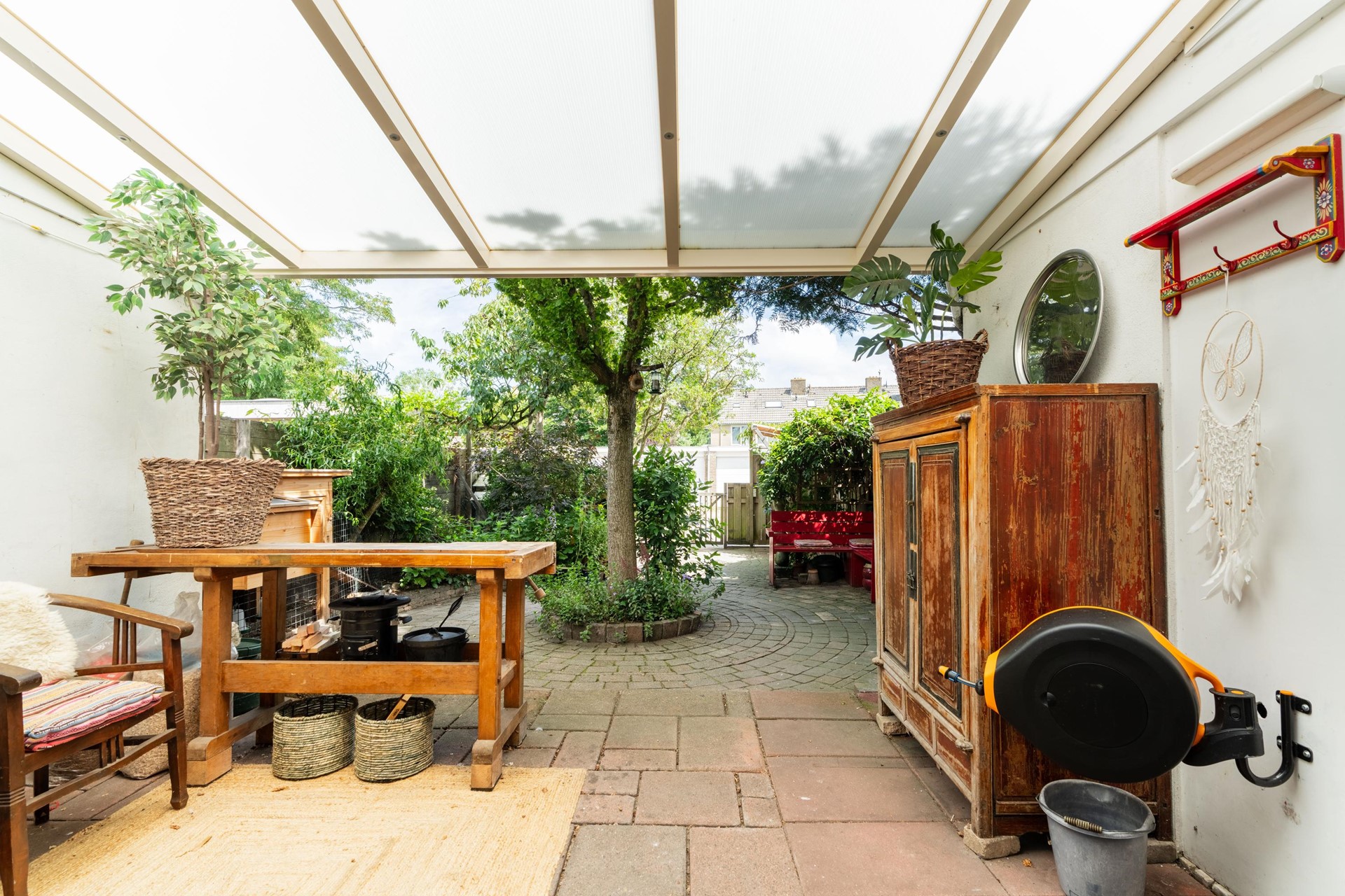 In totaal zijn er 4 slaapkamers, is er een fijne voortuin met vrij uitzicht door de T-kruising en een heerlijke achtertuin! Onder de overkapping zit je prive en beschut, perfect voor de ochtendzon.