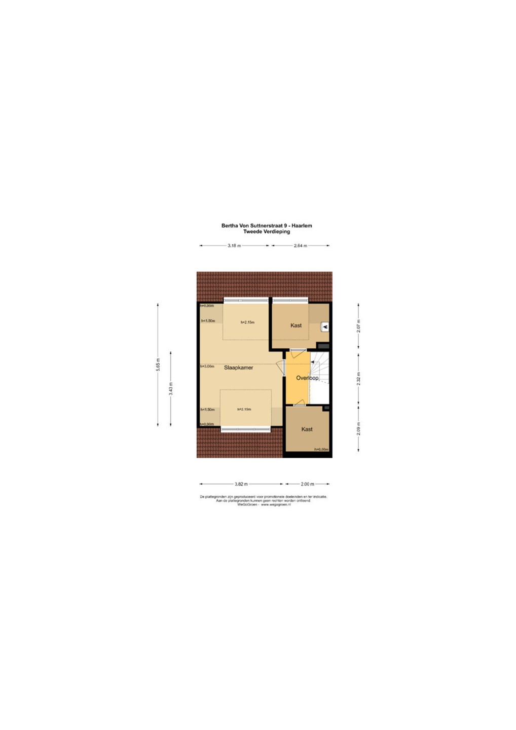 2e verdieping; overloop met bergruimte, slaapkamer met een dakkapel aan de voor- en achterzijde, berging met o.a. de c.v.-ketel.