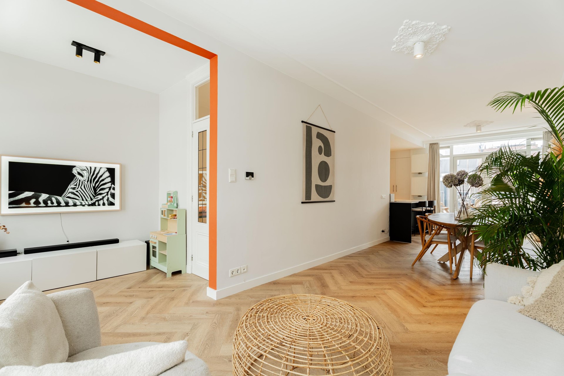 In 2021, the entire first floor was renovated, including a brand new island kitchen with Siemens appliances, including a combination oven, induction cooktop, and dishwasher. The staircases were also completely renovated, and a new Remeha central heating boiler was installed.